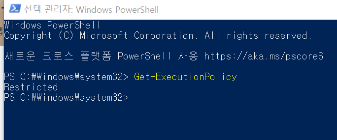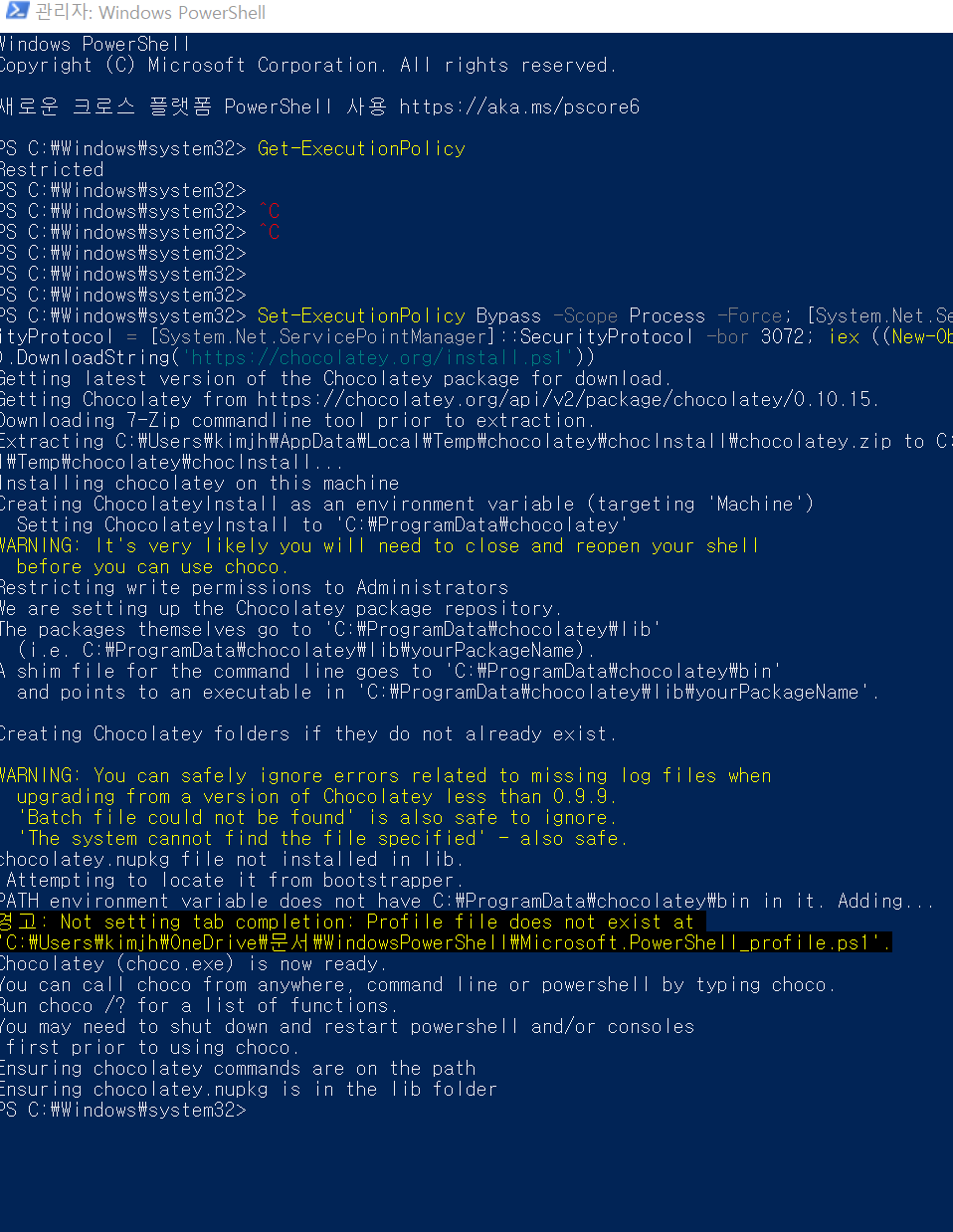 그냥 파워쉘 관리자 권한으로 실행하고 설치 하는 방향으로 다시 실행