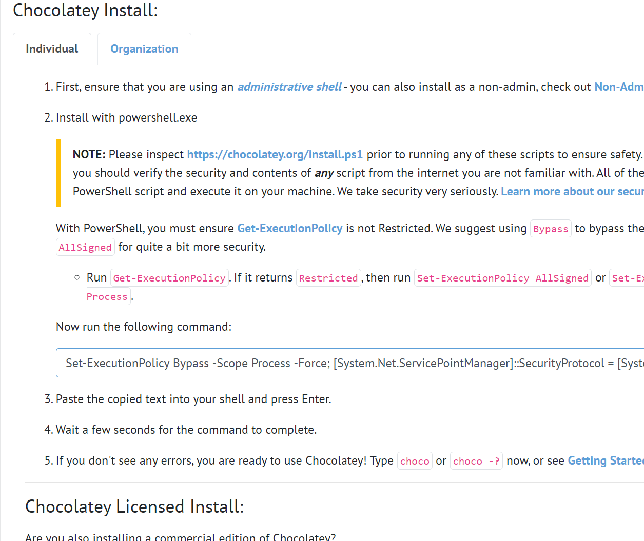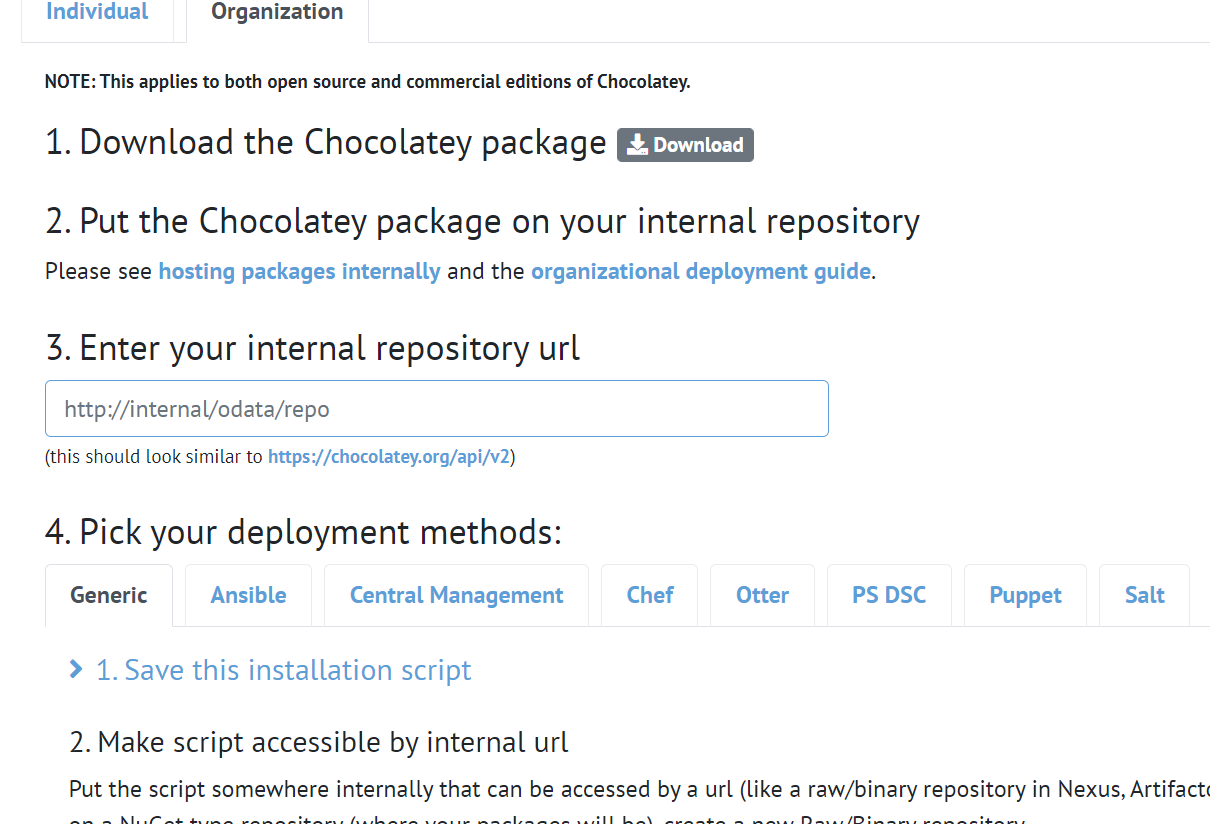 Chocolatey is software management automation for Windows that wraps installers, executables, zips, and scripts into compiled packages. Chocolatey integrates w/SCCM, Puppet, Chef, etc. Chocolatey is trusted by businesses to manage software deployments.
