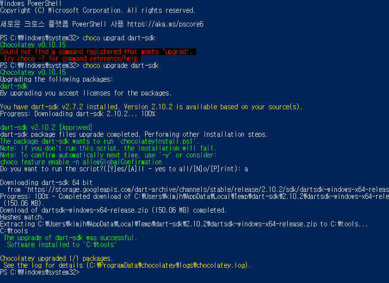 choco upgrade dart-sdk