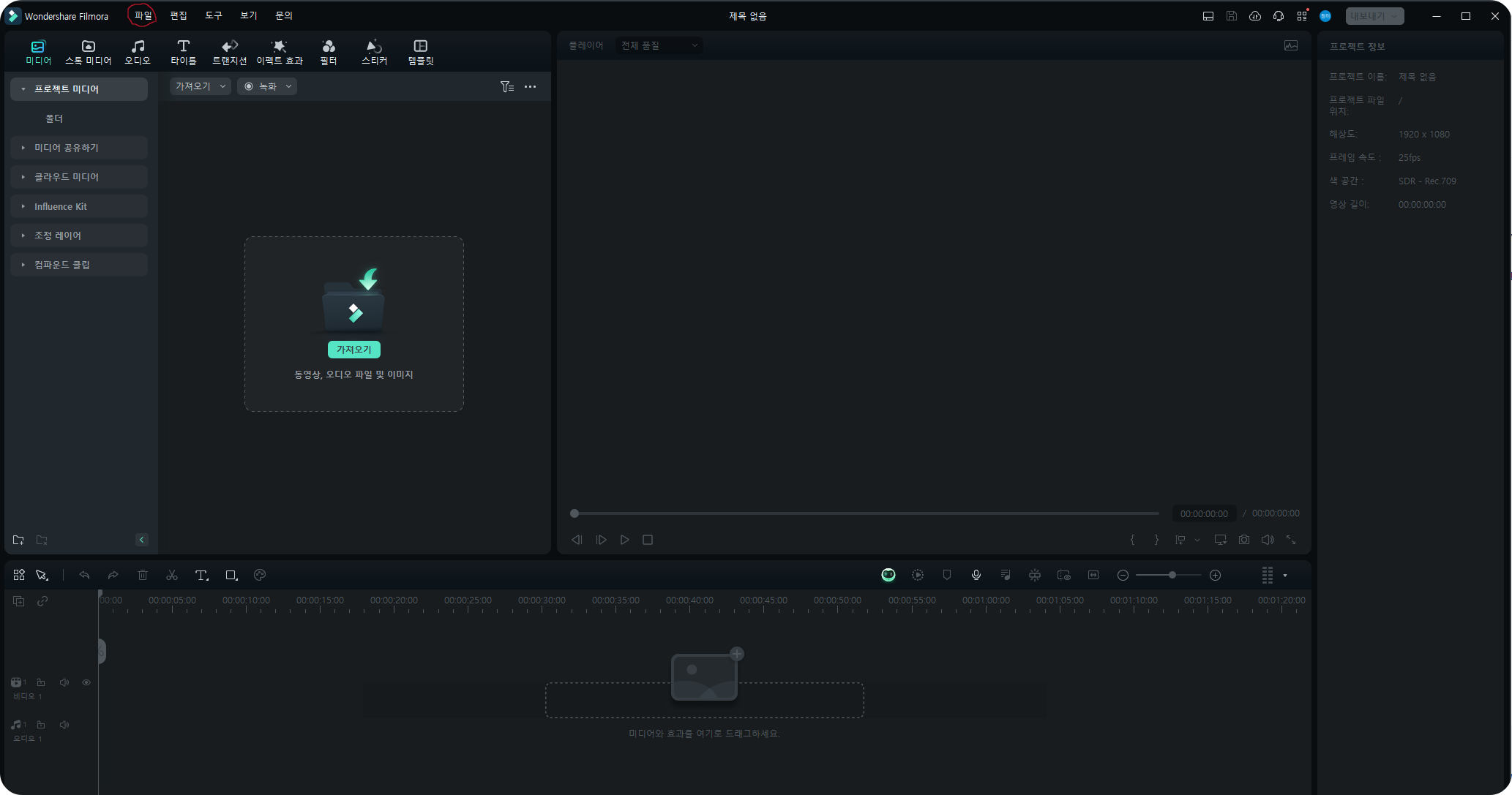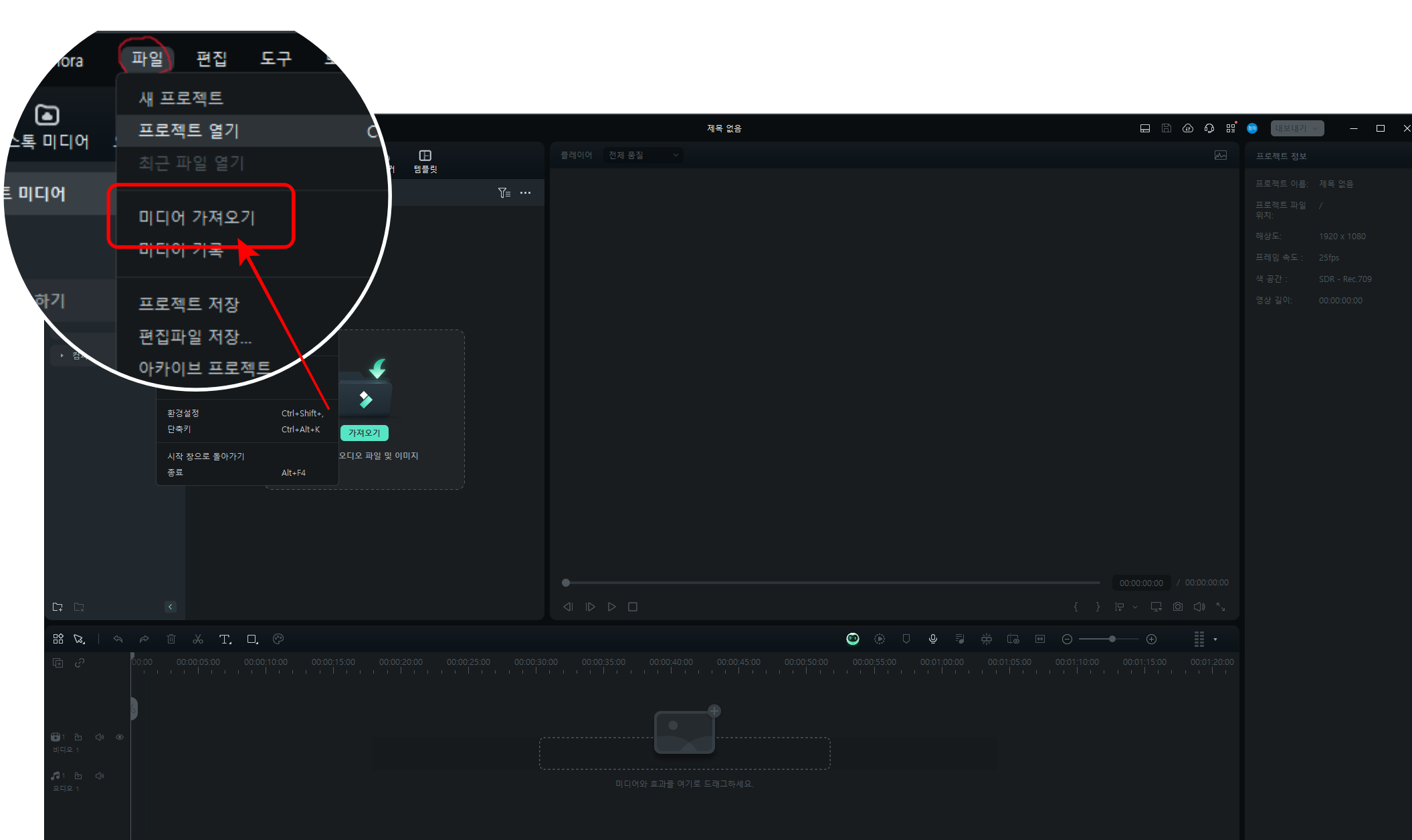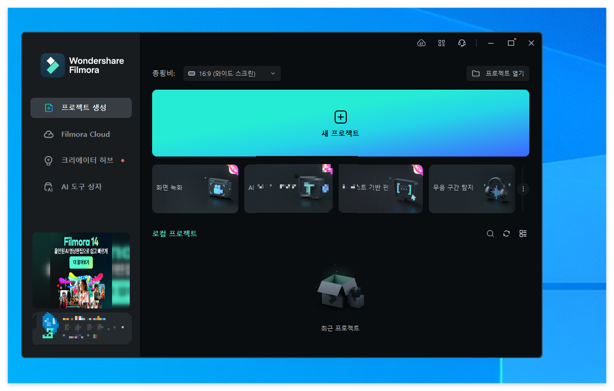1. 필모라 열기 및 새 프록젝트 시작