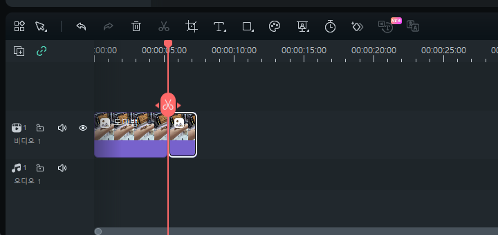 또는 원하는 부분들을 마우스로 클릭 후 빨간색 가위를 누르면 분할이 되고 필요 없는 부분을 클릭 후