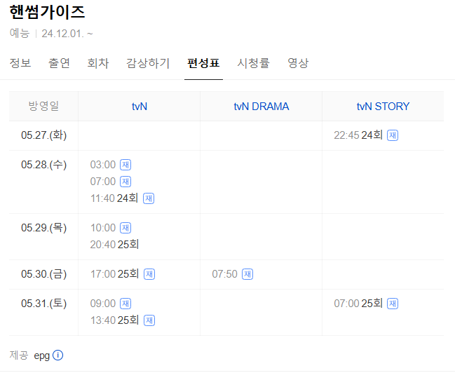 - tvN, tvN SHOW, tvN STORY에서 낮밤 가리지 않고 재방송 중입니다.