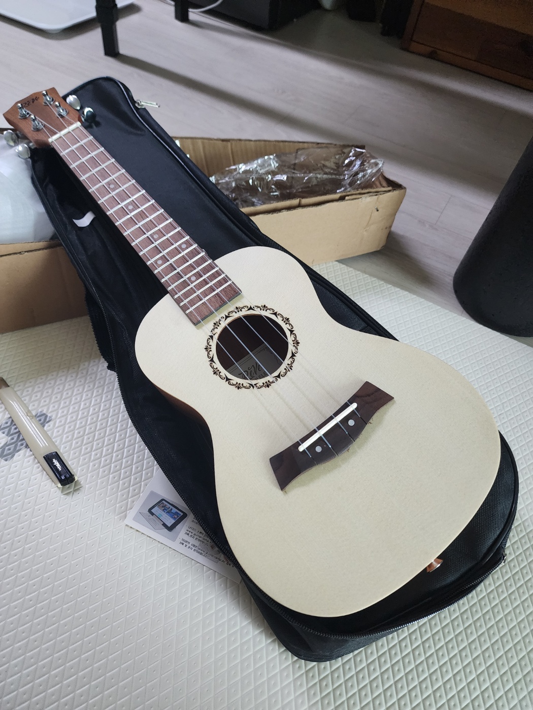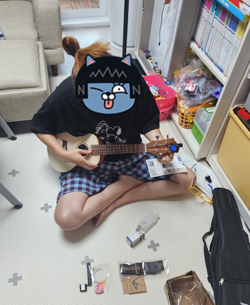 처음에 받았을때 너무 설레고 좋고~ 튜닝도 안된 우쿨렐레 악기를 띠디링~ 치니 왠지 모르게 재미있었답니다.