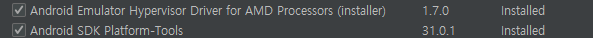 다 disabled 된 상태로 안드로이드 스튜디오만 깔아도 amd 하이퍼바이저 드라이버가 그냥 설치 되어 있고