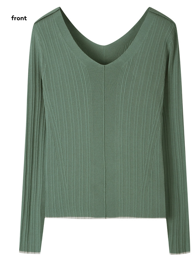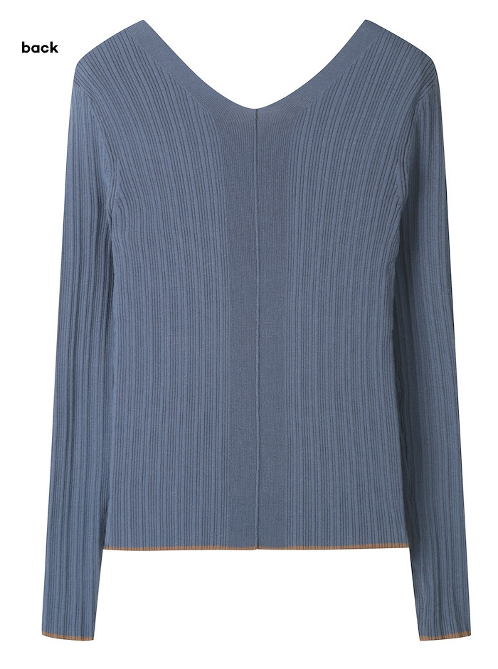 luxurious feeling with a wide V-neck, and a natural slim-fit ribbed knit.