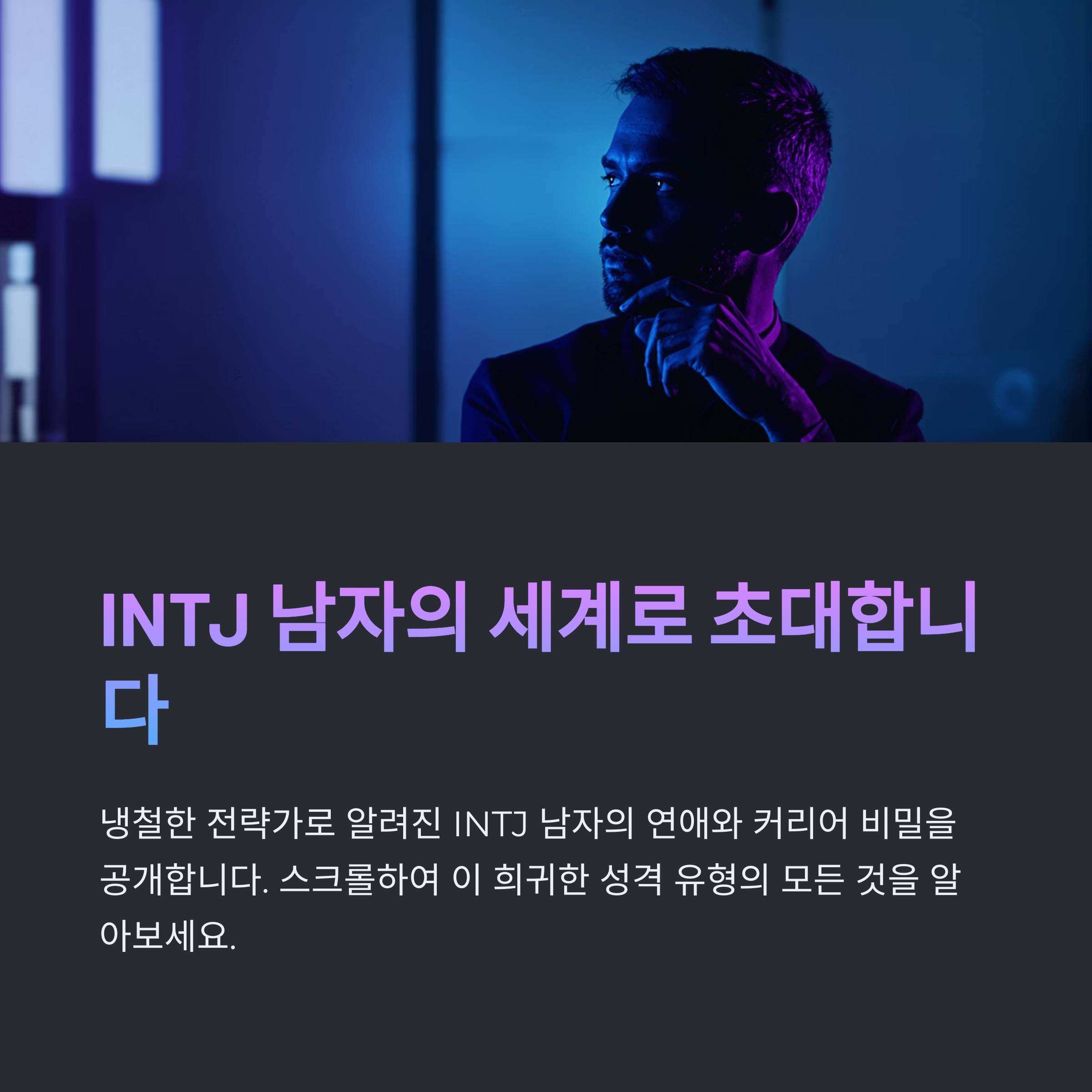 팩폭! INTJ 남자 연애, 이것만 알면 성공?INTJ 남성과의 깊이 있는 관계, 어떻게 만들어갈까요?INTJ 유형의 남성과 연애를 시작하려는 분들을 위해 현실적인 조언을 담았습니다.그들의 독특한 사고