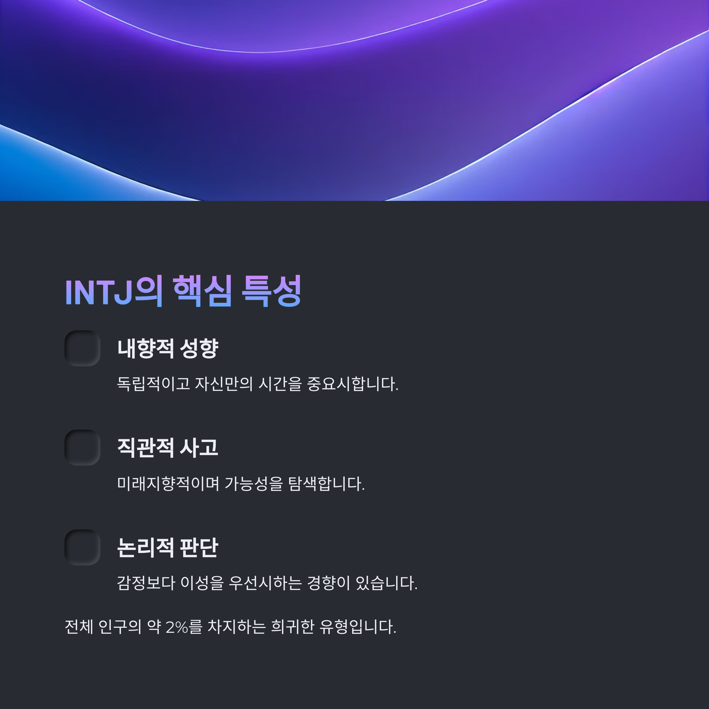 이를 통해 INTJ를 더 깊이 이해하는 데 도움이 될 것입니다.