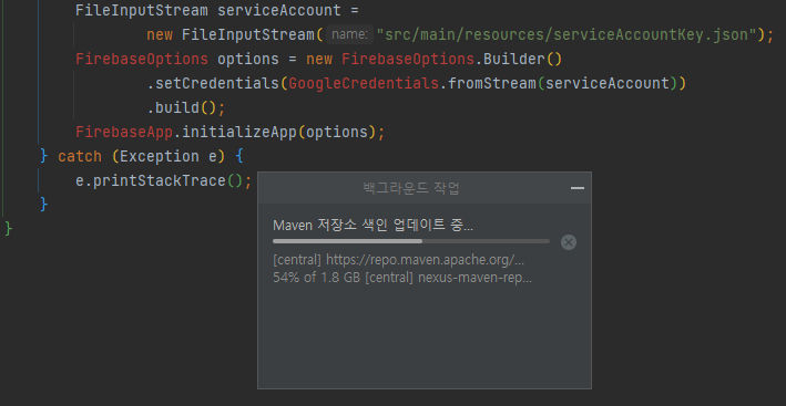 resource 폴더 밑에 넣어둔 serviceAccountKey.json 파일을 찾을 수 없다는 에러가 자꾸 나서 해결하는데 한참이 걸렸군요.