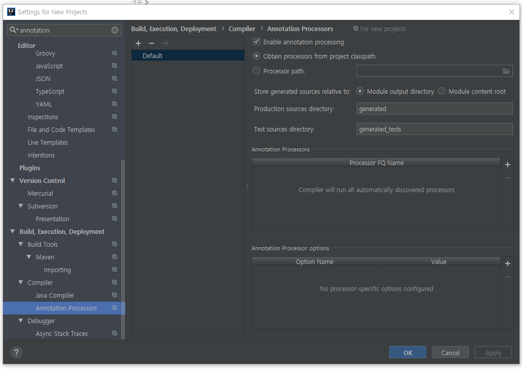 설정 화면에서 annotation 치고 어노테이션 프로세서에