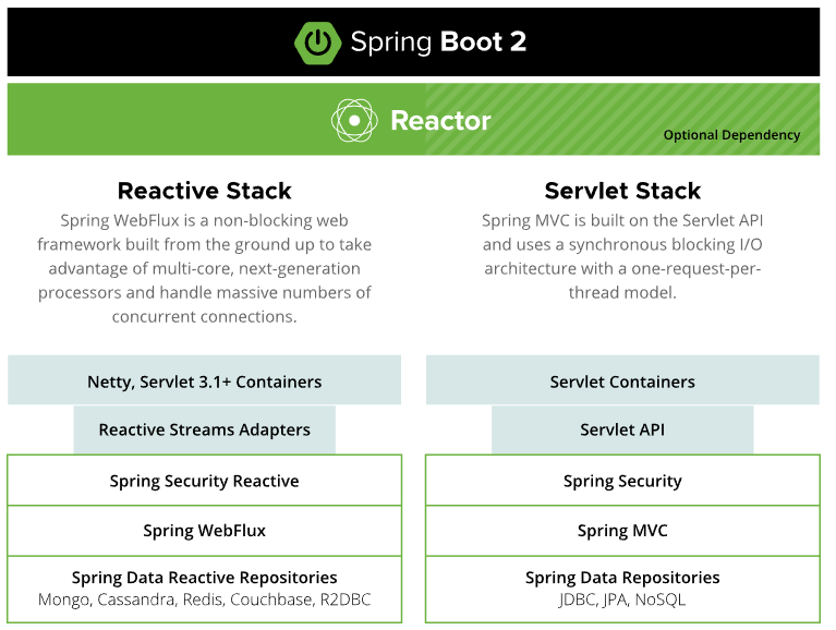 reactive stack에선 non-blocking 가 끌리고 서블릿 스택에선 jpa나 기존의 것들이 더 이상없이 작동할거 같고.