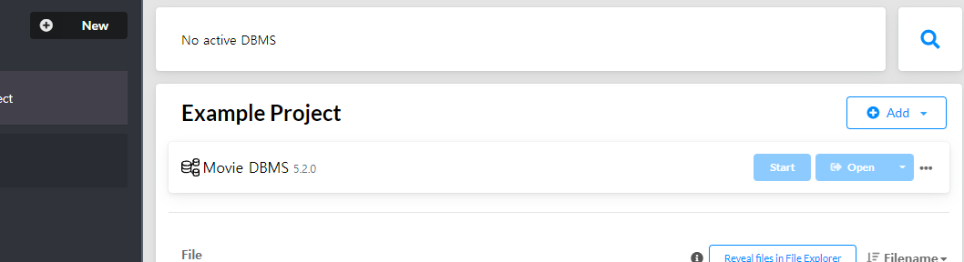 왼쪽에 프로젝트, dbms, graph app 등 탭과 아래쪽에 앱과 관련된 알림이나 설저등 정보 탭도 있다. 일단 설치 후 알아 가려는 계획이었기에 정확히 멀 어떻게 해야 할지는 모르겠다.