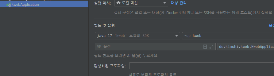 실행> 구성편집에서
