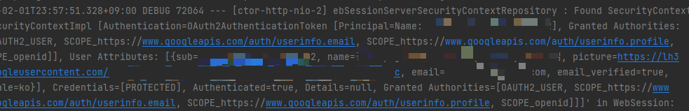콘솔에 디버깅 모드로 데이터를 보아도 이름이나 이메일 사진등 정보가 resource server로부터 잘 받아 온 게 보이네요.