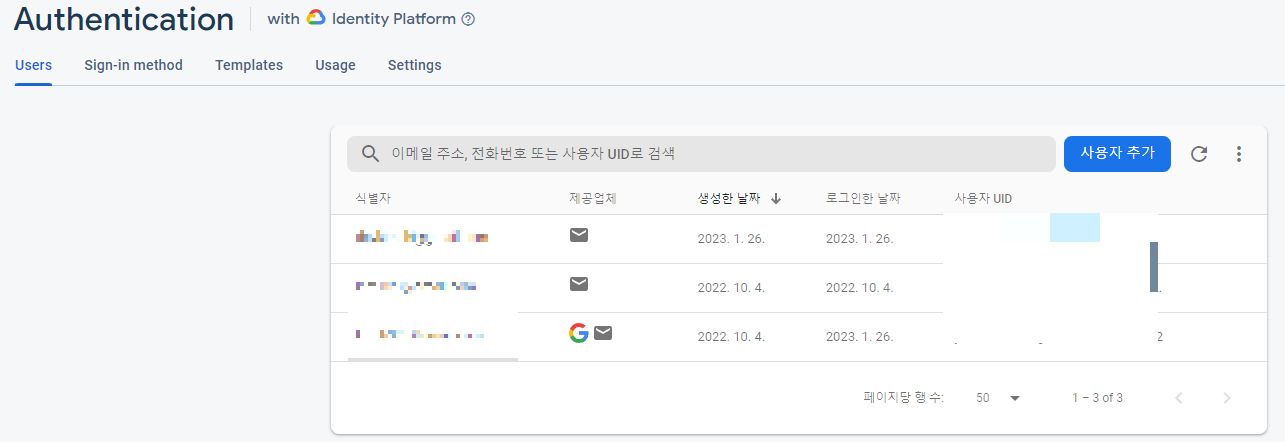 firebase가 google에서 만들었기에 구글도 공급자인 줄 알았더니 이메일/비밀번호 옵션은 따로 있었다. 일단은 기본적인 걸로 하고 테스트해볼 생각이다.