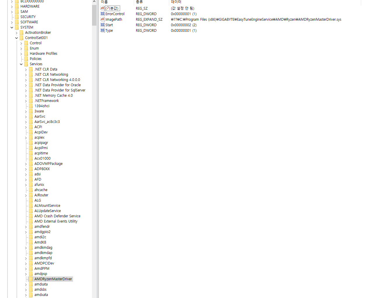 레지스트리를 보니