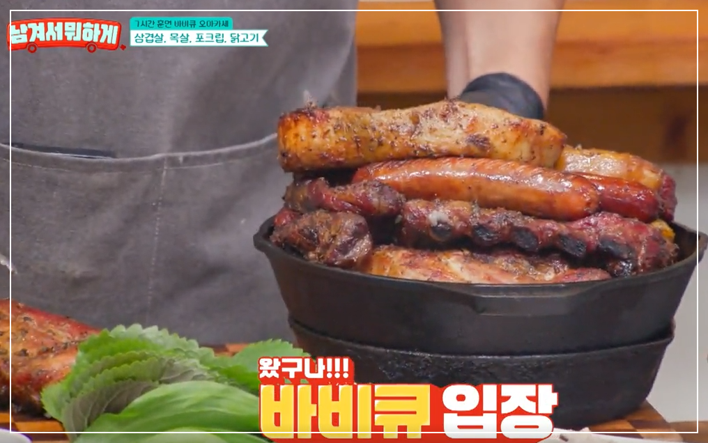 - 참나무 장작에 구운 포크립, 삼겹, 닭고기