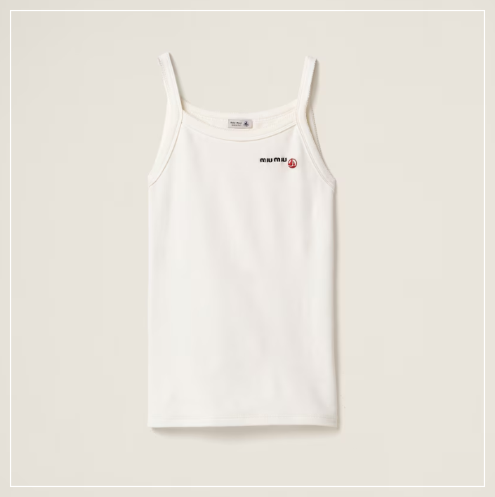 2. 효민 패션 Miu Miu 콜라보 탑 – Petit Bateau X Miu Miu 저지 나시